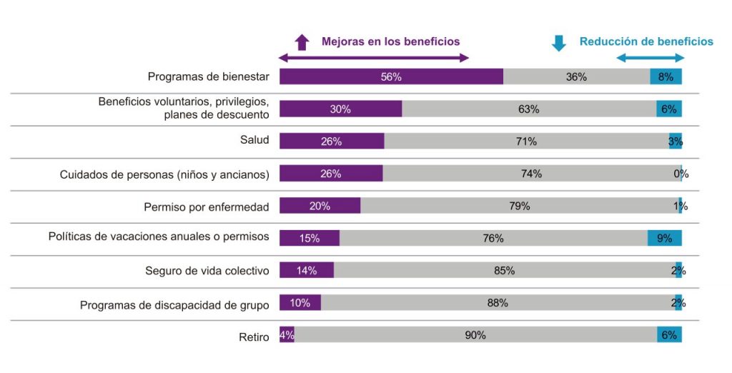 - Dos tercios de las compañías ya han hecho o planean hacer cambios en su programa de beneficios como resultado de COVID-19